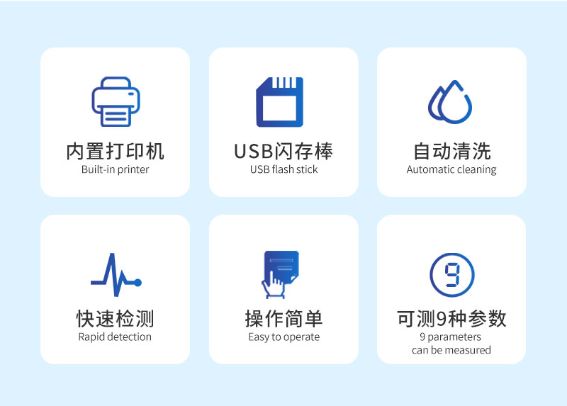 9、根據(jù)客戶要求選擇-電導(dǎo)率,內(nèi)置打印機(jī),USB閃存棒,第二蠕動泵自動清洗,PH值。
