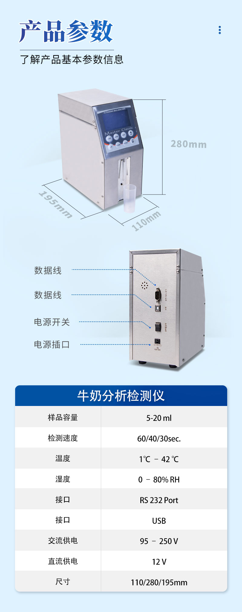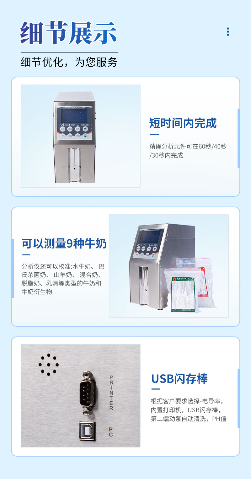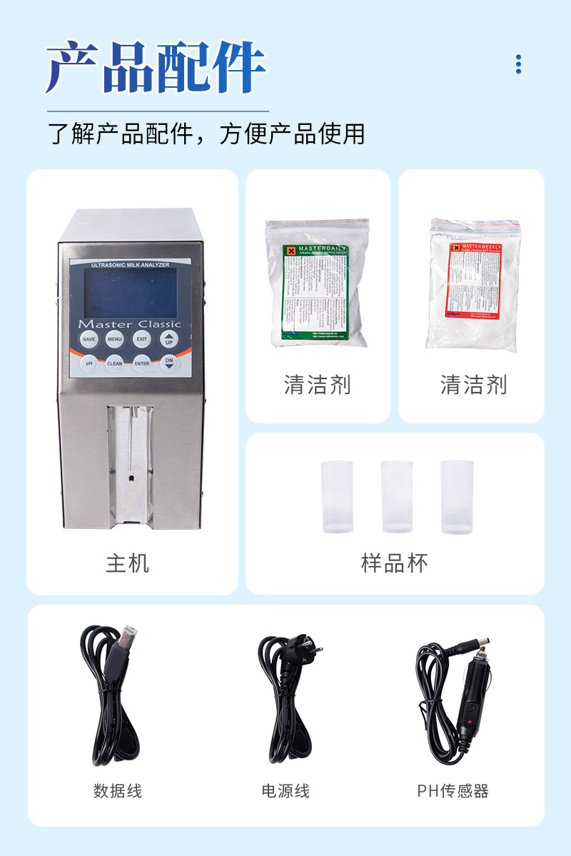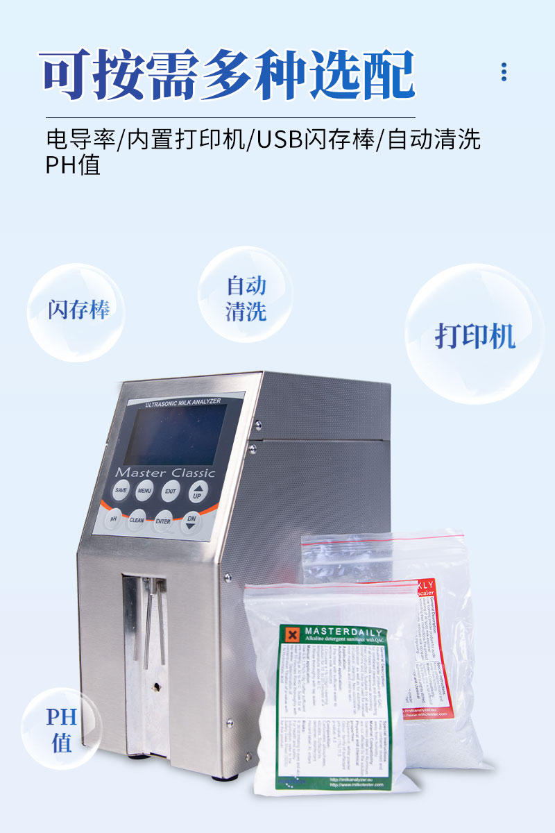 1、MILK CLASSIC是一種高質(zhì)量可以測量9種牛奶參數(shù)的儀器。