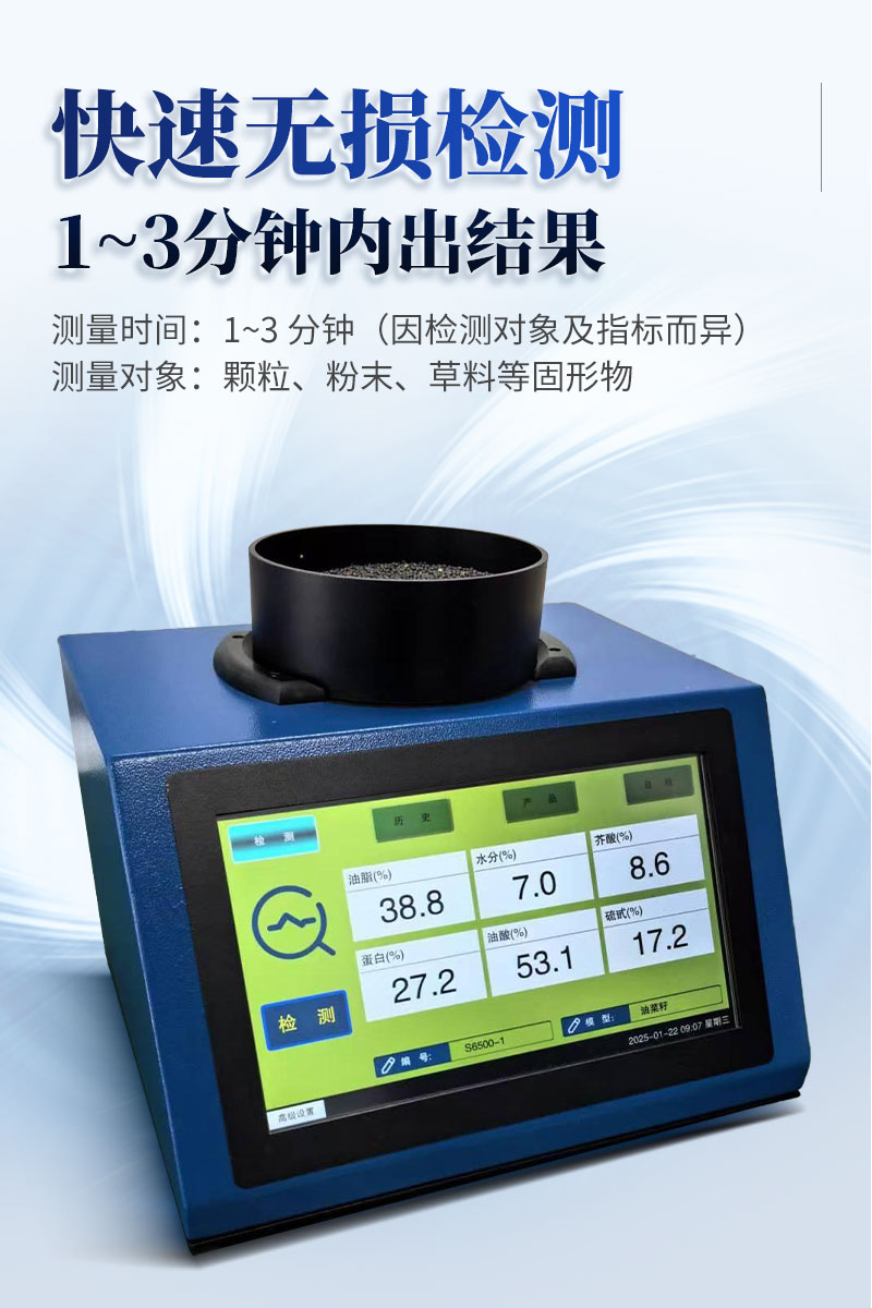 近紅外光譜分析儀,是針對原糧、食品、飼料等行業(yè)開發(fā)的** 檢測設(shè)備,可無損、快速、準(zhǔn)確地檢測樣本的水分、脂肪、蛋白質(zhì)等多種指標(biāo)。